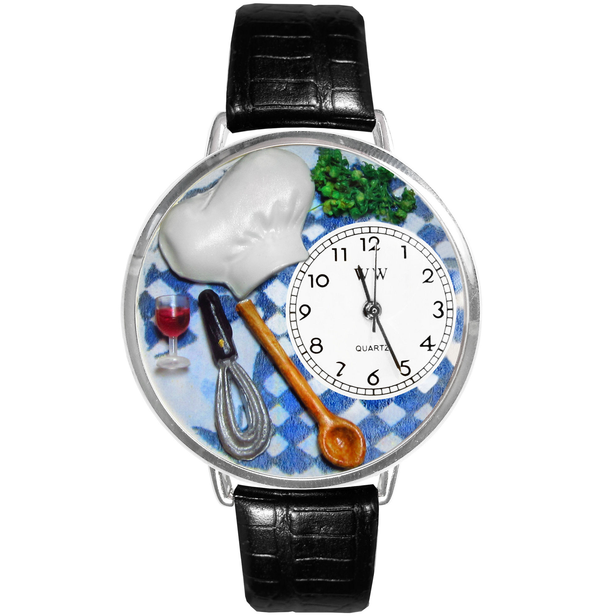 If You search Watches then Whimsical Watches Personalized Chef Womens Silver-Tone Bezel Black Leather Strap Watch is best choice.