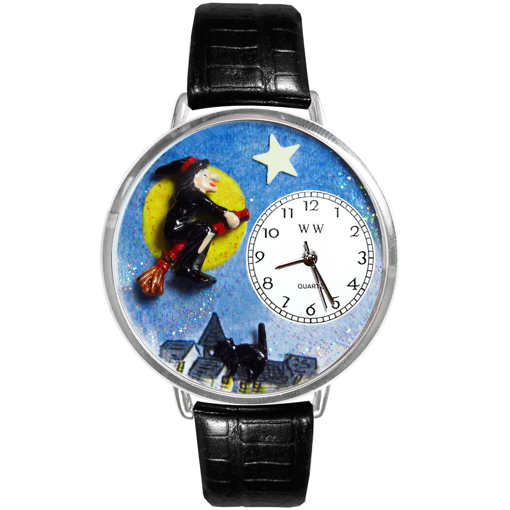 If You search Watches then Whimsical Watches Personalized Halloween Witch Womens Silver-Tone Bezel Black Leather Strap Watch is best choice.